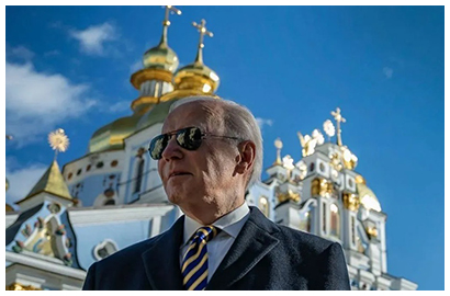 Несмотря на вой включённой комедиантом Зеленским в Киеве сирены воздушной тревоги (чтобы выклянчить у Байдена F-16 и средства ПВО), католик Байден и иудей Зеленский при посещении православного Свято-Михайловского Златоверхого монастыря были в полной безопасности, потому что их сверху охранял Бог, Путин и Военно-космические силы Российской Федерации.