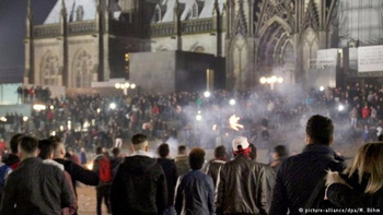 Дело в том, что в ФРГ, в Новогоднюю ночь, на Домской площади Кельна, перед Домским собором, и на Центральном вокзале тысячи мужчин – арабов и африканцев – приставали к гуляющим женщинам и даже несовершеннолетним девушкам: бесстыдно лапали, хватали за груди и ноги, грубо ощупывали, срывали одежду и нижнее бельё, склоняли к оральному сексу, насиловали, просто грабили, а потом издевались – кидали в них петардами и бенгальскими огнями! Всё это происходило на глазах у струсивших сотен полицейских, которые испугались вмешаться из-за превосходящего числа насильников (СМОТРИТЕ ВИДЕО, КОТОРОЕ УДАЛЯЮТ)